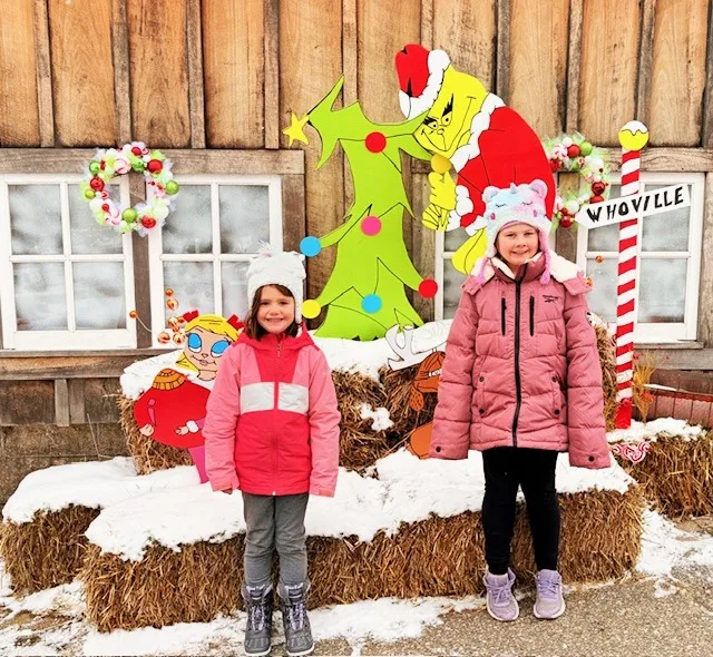 - We have more photo opportunities. In addition to the immediate area by Santa and Mrs. Claus, we have several photo spots with vintage and farm-type decorations that you won’t find anywhere else. Areas include our red antique fire truck, antique tractors, horse trough snowman, Grinch photo spot, gingerbread house, John Deere tractors under the tree, a vintage sleigh, and more unique spots.
